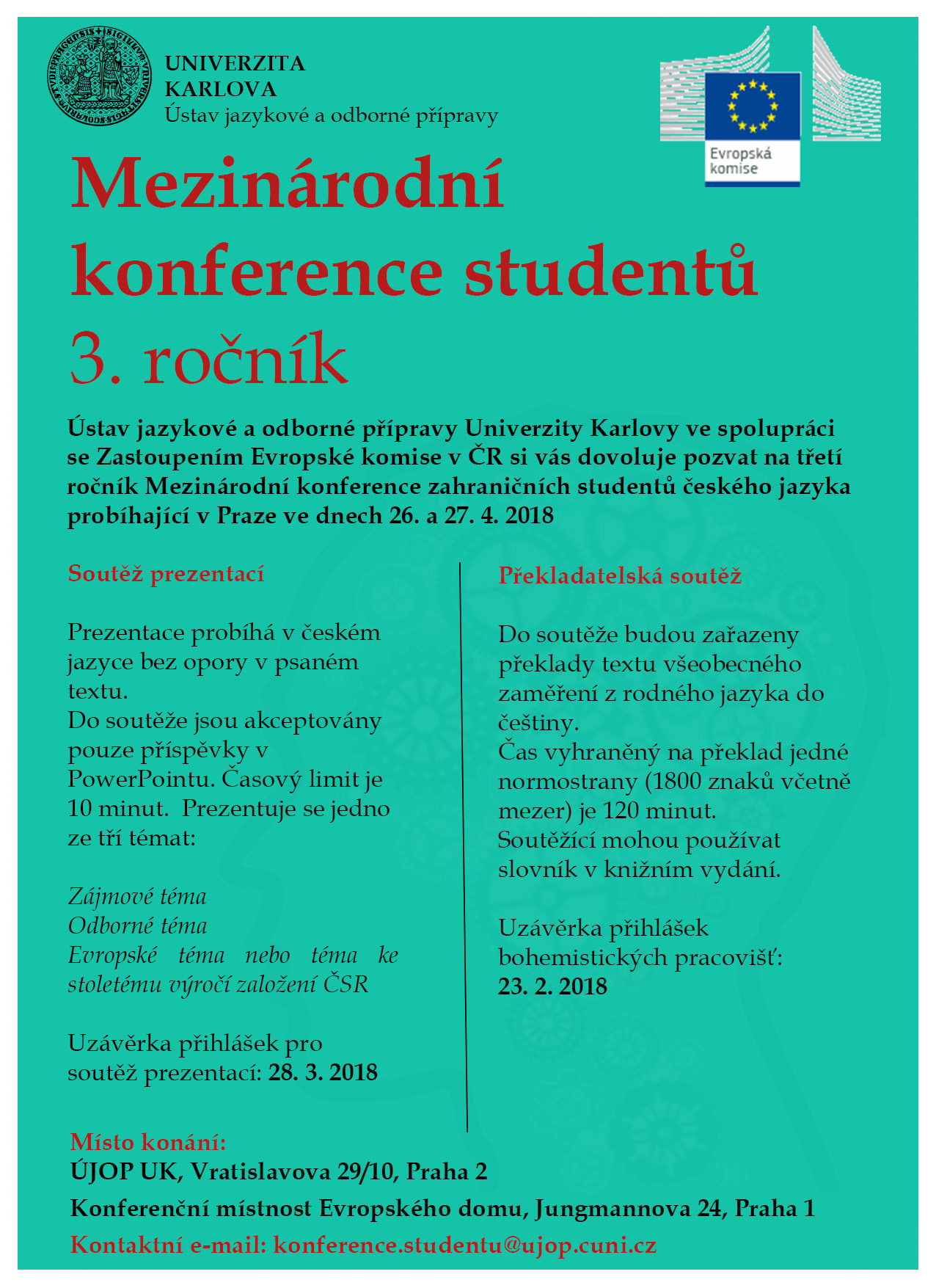 Uzávěrka přihlášek pro soutěž prezentací: 28. 3. 2018