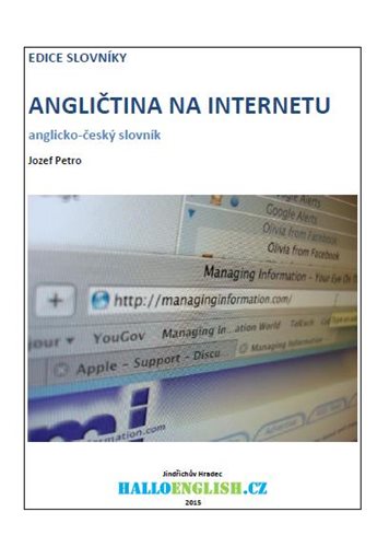 HALLOENGLISH.CZ, Jindřichův Hradec 2015. e-book, formát PDF. 350 str. Anglicko-český slovník internetu přináší přes 2000 výrazů z oblasti informačních technologií a internetu. Kromě českého překladu jsou součástí hesla také ukázky použití a to jak v angličtině, tak i v češtině. Kromě obecných výrazů, které se na internetu používají běžně, najdete v slovníku také výrazy internetového slangu, slangu hráčů počítačových her, zkratky a akronymy používané na internetových fórech. 199 Kč, ISBN 978-80-87951-05-7.